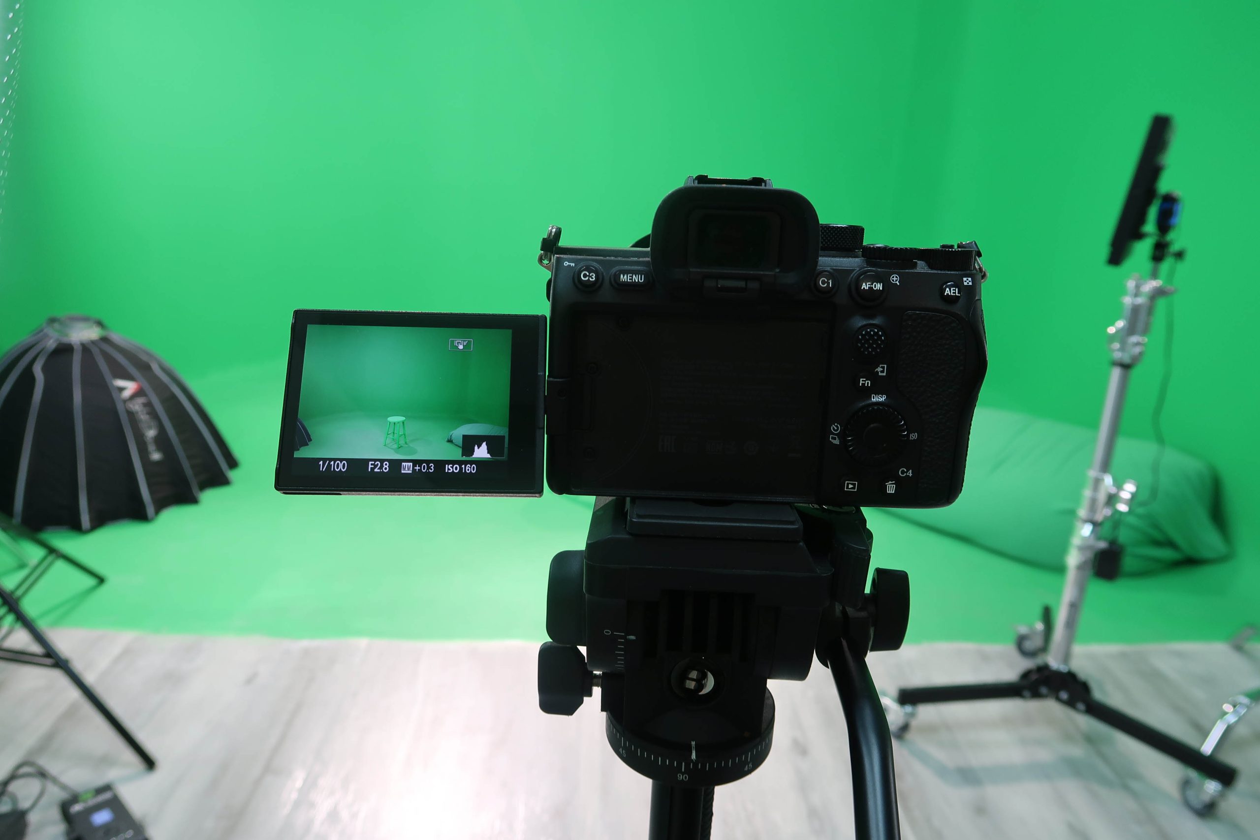 לצפייה בלייב בזמן הצילום, במסך ירוק על הרקע המתוכנן לאחר הורדת הירוק- לדיוק זווית הצילום באופן המירבי.